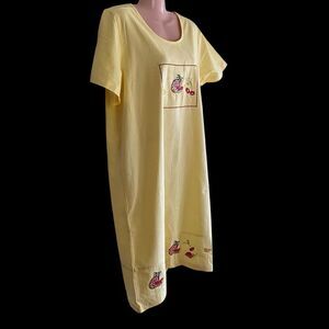 Vtg Jane Ashley Dress Size Large Yellow Fruit Tropical Resort Vacation