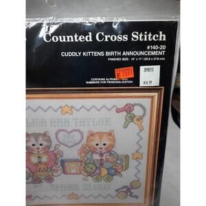 Vtg Janlynn Counted Cross Stitch Kit Cuddly Kittens Birth Announcement 14x11