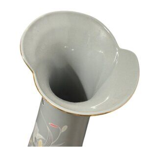 Vtg Japanese Fluted Gray Porcelain Vase with Gold Trim, Lillies and a Butterfly