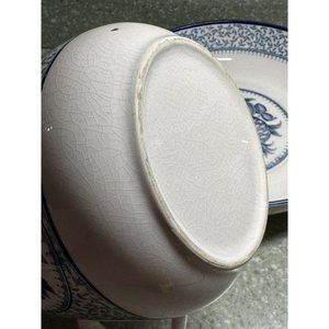 Vtg Jay Import Co Blue And White Fruit Pitcher & Bowl Water Pitcher Cottagecore