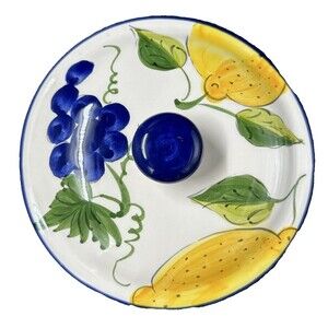 Add a vintage touch to your kitchen with this large ceramic fruit canister by Andes by Sadek. Made in Portugal, this round canister comes with a lid and has a diameter of 5.75 inches and a height of 7.25 inches. The multicolor design adds a pop of color to your kitchen and the vintage style gives it a unique charm. This canister is perfect for storing your favorite fruits or other kitchen items. The ceramic and porcelain material makes it durable and long-lasting. It's a late 20th Century Mediterranean Style with White, Yellow, Purple, and Green Fruit and is a great addition to your kitchen storage and organization.