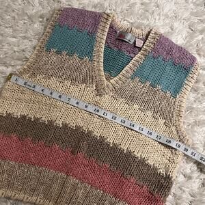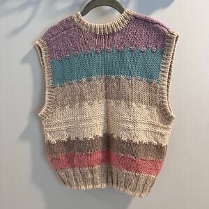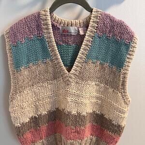 This striped sweater vest is a size L and has been previously owned. It is in good used condition but does have a small imperfection at the bottom- shown in pictures.