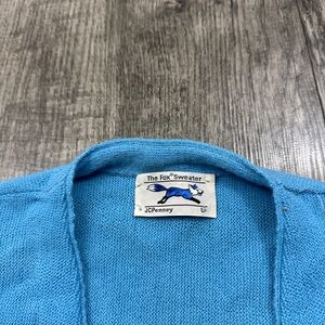 Vtg JcPenney The Fox Orlon Acrylic Grandpa Cardigan Sweater Baby Blue 70s 80s