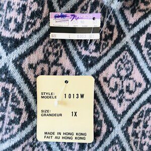Vtg Jeanne Pierre Woman Sweater Lambswool Wool Anglora 1X Geometric Grey NWT 90s