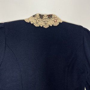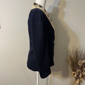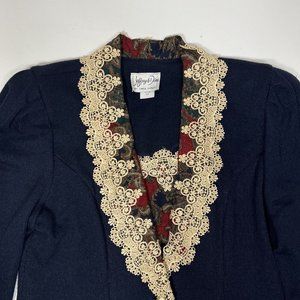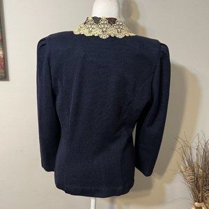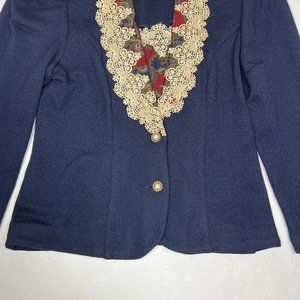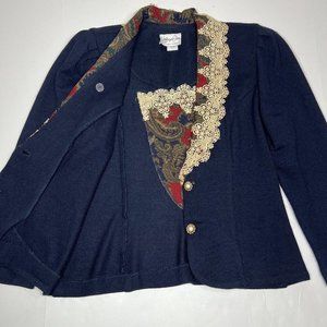 Vtg Jeffrey and Dara Women's Sz 9/10 Blue and Paisley Blazer Jacket Lace Collar