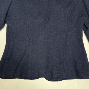 Crafted from a blended fabric of polyester, nylon, and acrylic, this jacket is high-quality and durable. The long sleeves have a no-button style, and the jacket sleeve buttons are hidden for a sleek and modern look. The lace collar adds a touch of femininity to the design. This blazer is dry clean only and comes in a women's size 9/10. Don't miss out on the chance to add this unique piece to your wardrobe!