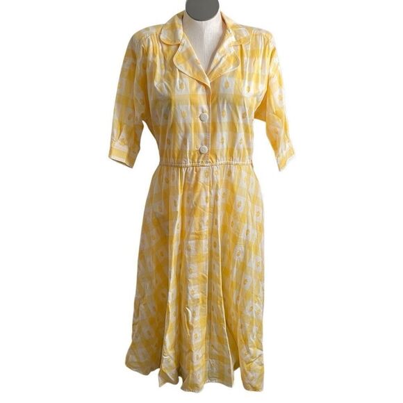 Vtg Jerrell of Texas Womens Fit & Flare Midi Dress 9/10 Retro Yellow Checkered Nostalgia