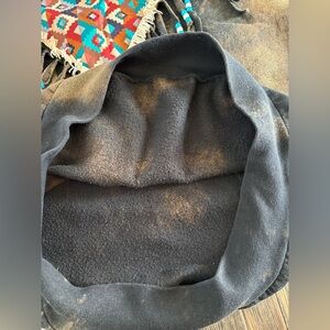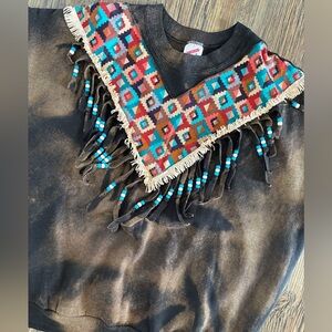 Vtg Jerzees Crewneck Sweatshirt Womens 2XL Aztec Black Bleach Dyed Beaded Fringe
