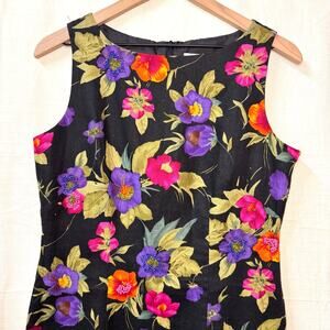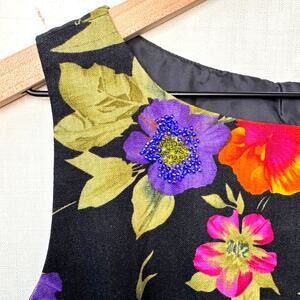 Vtg Jessica Howard Linen Sheath Dress Women's 10 Beaded Floral Dressy Summer