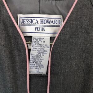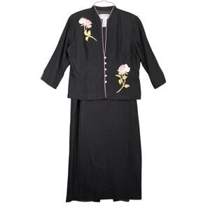 Vtg Jessica Howard Women's 12P 2-pc Dress & Embroidered Rose Jacket Black Linen
