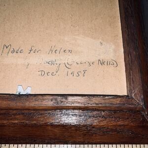 As you can see from the pictures of what you will receive, this painting, completed in 1958 is in good conditon, with the frame also in good condition. The frame is a solid wood, and the painting is in remarkable condition for being 67 years old. The hanger is a circle hook at the top of the frame.