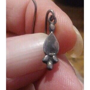 Vtg Jet Back 925 Teardrop Hook Dangle Earrings Marked