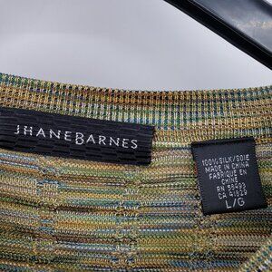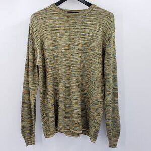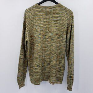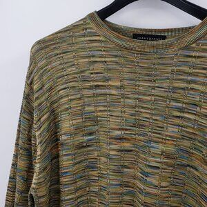 Vtg Jhane Barnes !00% Silk Sweater Men's L Green Multi Textured Knit Crew Neck