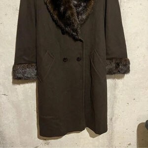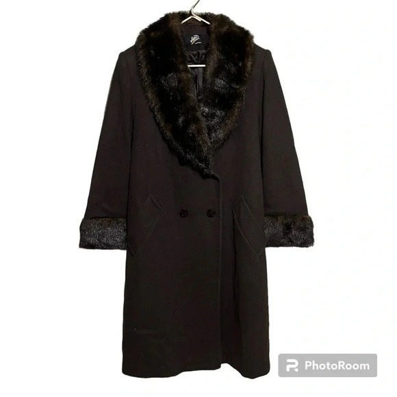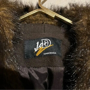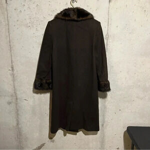 Vtg Jo-D Brown Wool Long Coat Faux Fur Collar Women’s Size Medium M