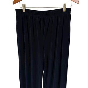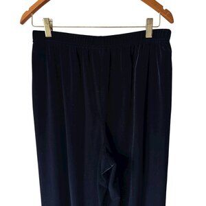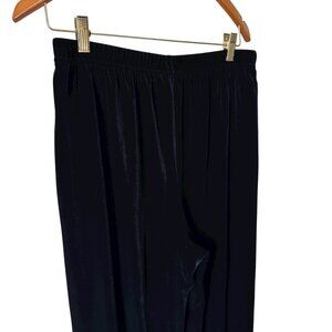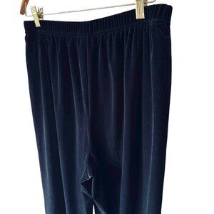 Vtg Joan Leslie Petite Pant Velour Pull On Comfort Black Straight Leg High Rise