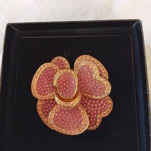 Vtg Joan Rivers Brooch Pink Pave Swarovski Crystals Flower Classics Collection