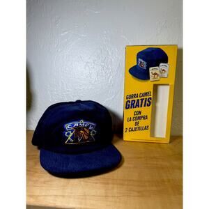 Vtg Joe Camel Smooth Character Dark Blue Corduroy Cap Hat 90s Cigarette Promo