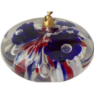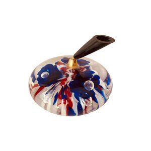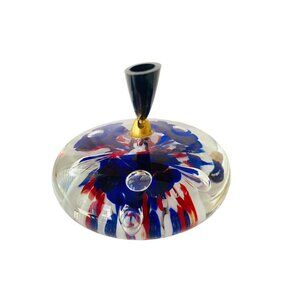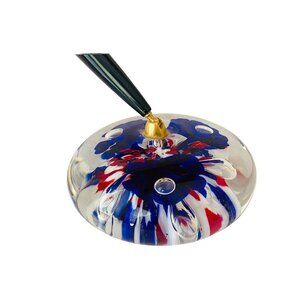 Vtg Joe Rice Glass Blown Paperweight 2002 Red White Blue Pen Holder Patriotic