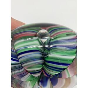 Vtg Joe Rice St Claire Hand Blown Art Glass Multi Color Ribbon Claw Paper Weight.