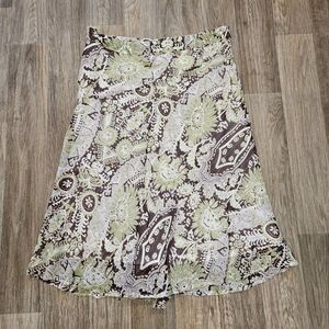 Vtg John Paul Richard Floral Slip Skirt Womens 10 Green Brown Fairycore Boho Y2K