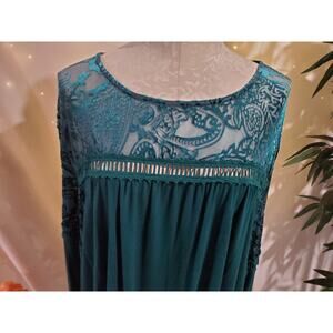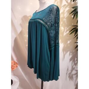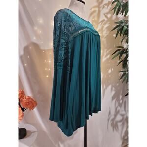 Vtg John Paul Richard Velvet Burnout Babydoll Bell Sleeve Top Size 3X Green Whimsigoth