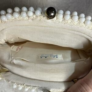 Vtg John Wind Beaded Purse White Handbag Chain Strap Clutch Wedding Art Deco MCM