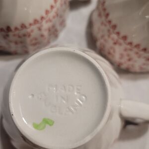 This product is a set of three vintage Johnson Brothers tea cups, featuring a beautiful pink floral bouquet design. Made in England from porcelain, these cups are perfect for all occasions and add a touch of elegant charm to any tea-drinking experience. The floral pattern and vintage appeal make them a lovely addition to any collection of cup and saucer sets. Made in the United Kingdom, these cups offer a touch of British craftsmanship and style.