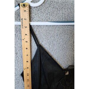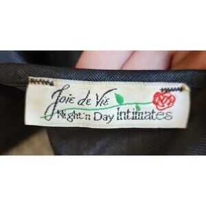 Vtg Joie De Vie Nylon Satin Nightgown Plunging Lace High Slit Sexy Black Petite