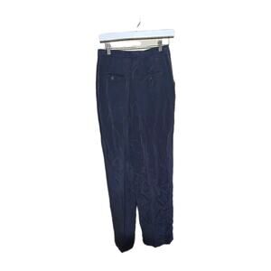 Vtg Jones NY Navy Blue 100% Silk Straight Leg Old Money Casual Pants Woman Sz 10. Pre-owned