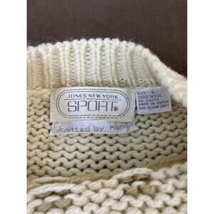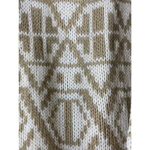 Vtg Jones NY Sz L 100% Hand-knitted Wool Fair Isle Geometric White Tan Sweater