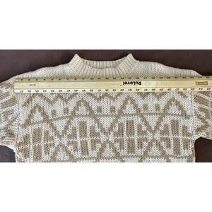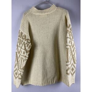 Vtg Jones NY Sz L 100% Hand-knitted Wool Fair Isle Geometric White Tan Sweater Crew Neck Made in Korea. See photos for details