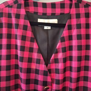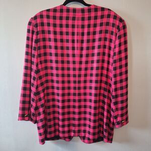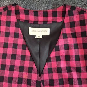 Vtg Jones New York Academia Blazer Womans 14 Pink Black Buffalo Check Preppy