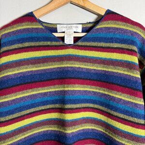 Vtg Jones New York Sport Lambswool Striped V-Neck Sweater Pullover Women's Small