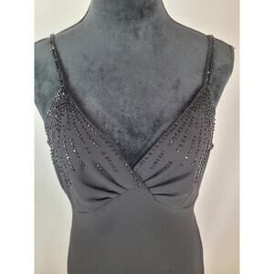 Vtg Jones New York Womens Strappy Beaded Evening Gown Dress 90s Y2K Black Sz 10