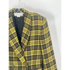 Vtg Jones New York Yellow Plaid Blazer Clueless 100% Wool Sz 8 90s Preppy