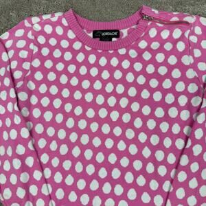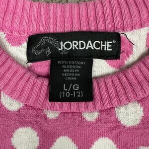 Vtg Jordache Sweater Size L 10-12 Pink White Polka Dot Cotton 90s Kidcore Retro