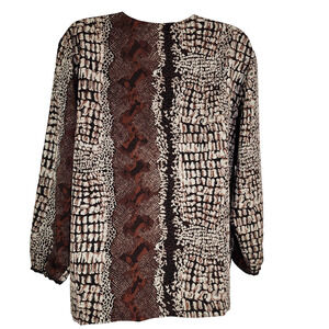 Vtg Jordan Womens Shirt Size 14 Button Brown Snake Skin Print Long Sleeve Retro
