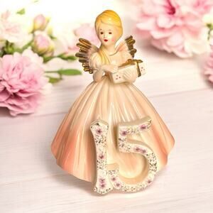 Vtg Josef Originals Birthday Angel Figurine Year 15 Japan Black Eyes Sticker Tag