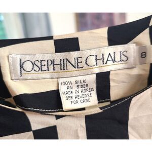 Vtg Josephine Chaus 100% Silk Black White 8 Geometric Modern Minimalist Blouse