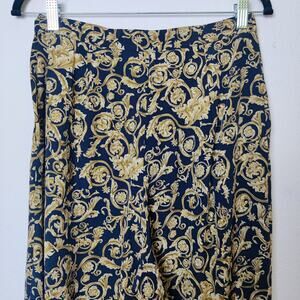 Vintage Josephine Chaus high waisted pleated trousers. Black with Versace inspired gold leaf pattern.
