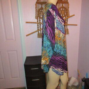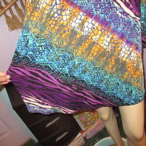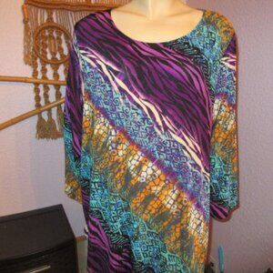 Vtg Jostar Artsy Tunic Top Size 2XL Stretchy 3/4 Sleeve Psychedelic Rainbow Boho