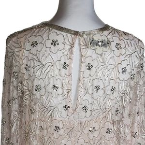 Vtg Judith Ann Plus Pink Dress Sz 2X 18-20 Floral Bead Sequin Drop Waist Flapper