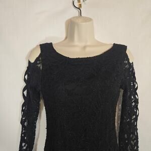 Vtg Jump Apparel Goth Emo Black Lace Bodycon Dress Witchy 80s Grunge LBD Medium