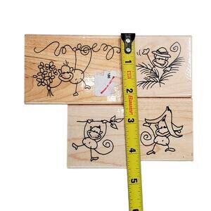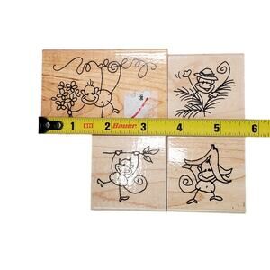 Vintage Junk Drawer Lot of 4 Stampendous Funky Monkey 2007 Rubber Stamps Animal Core Y2K.