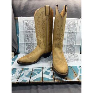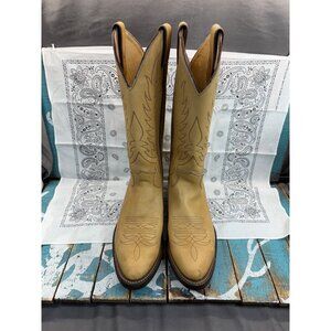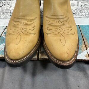 Vtg Justin Mule Hide Tan Western Work Cowboy Boots Mens 7.5D USA Made Cushioned