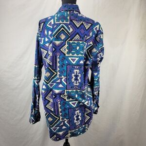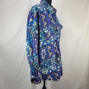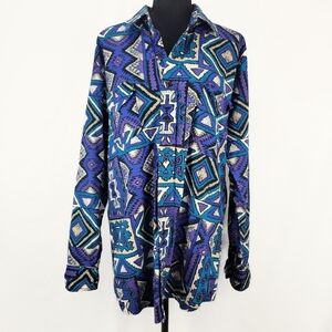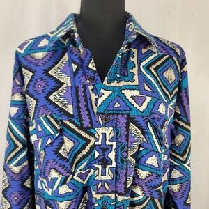 Vtg KARMAN Vibrant Purple Blue Tribal Aztec Button Down Shirt