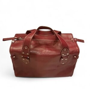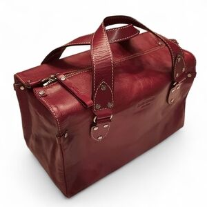 Gorgeous Kate Spade vintage doctors bag. Made with excellent materials and craftsmanship. Roomy leather body in Raspberry. Noel logo on rivets and protective bag feet. Thick branded leather zipper pulls. Zip top break away closure with interior side flaps that snap. Interior has suede striped lining with 1 zip and 2 slip pockets. Includes care card and envelope. The perfect bag for collectors.
