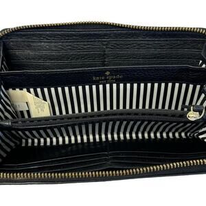 Vtg KATE SPADE New York Black Genuine Pebbled Leather Zip Around Wallet Clutch