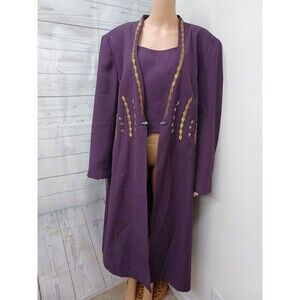 Vtg KB Stella Louise Long Duster Jacket Womens Purple Plum Beads Gold Thread 24W