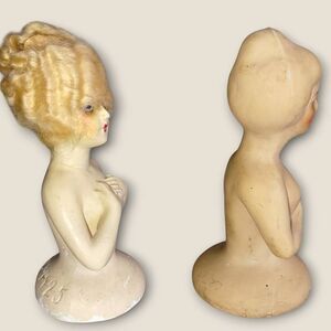 Vtg Boudoir a pair of chalkware half dolls. One with blonde Wig, Marked K.G. 1925 RARE Art Deco Flappers